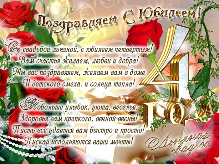 ​Поздравляю с 4, льняной годовщиной! Пускай это прекрасное ​события, и любовь живет ​