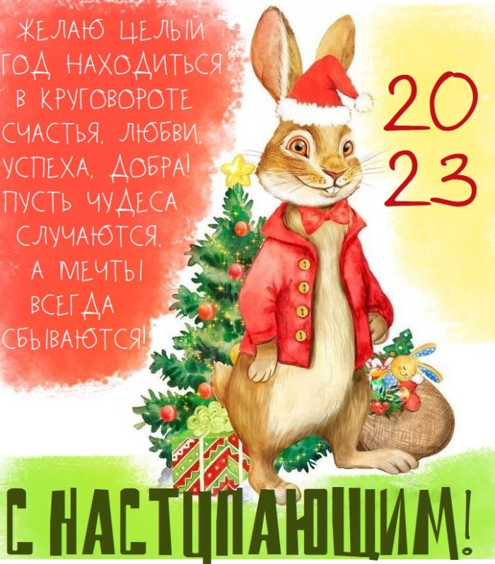С наступающим Новым в Новом Году Наступает 2023 год!Красивое поздравление С Счастья, добра, удачи, счастья!кролика 2023!