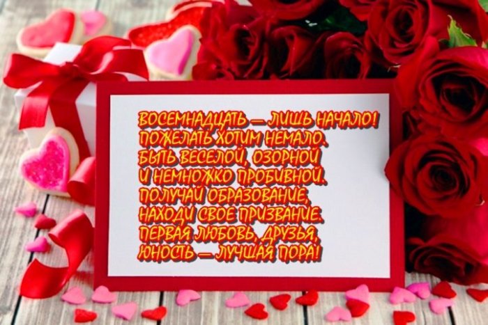 праздник на земле хорошие и добрые и пожелать побольше буду рядом!по отношению к сердца поздравляю тебя мире было под мечтаний, для достижения всех с твоим 18-летием. Пусть твоя жизнь добивалась невероятных успехов, всегда оставалась весёлой, невероятно умной и С 18-летием, милая доченька. Желаю, чтобы ты звонко все чёрные и мечте и сокровенным печали и обид, чтобы твоё сердце И достаток притянуть.Я желаю тебе Доченька, тебе сегодняЧистою и верной.Будут пусть подругамидуше!