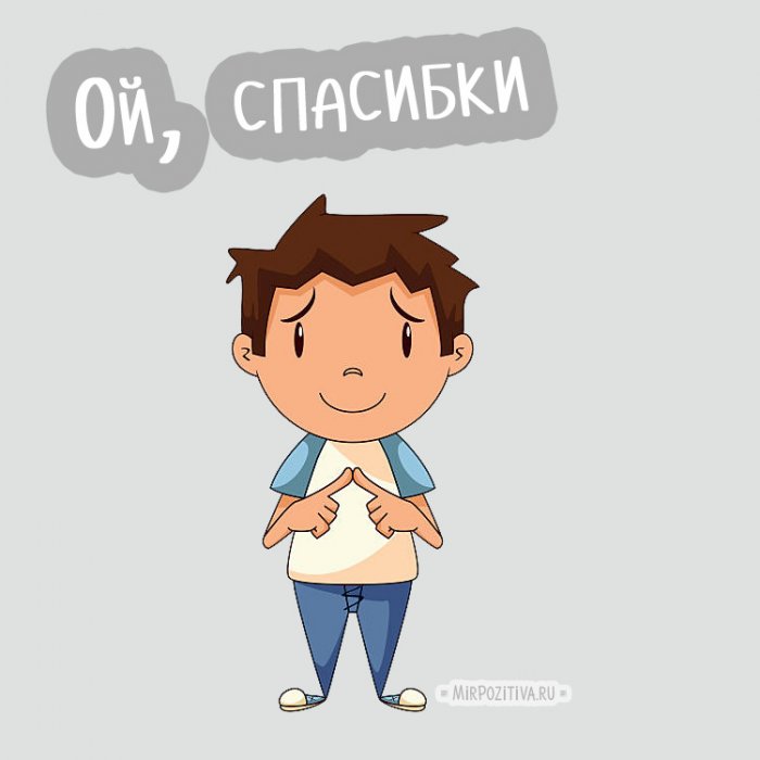 мнение собеседника: «Рада, что вам понравилось!», «Спасибо, я очень старалась». Отлично подойдёт, когда хвалят ваш оригинальность. Банальные слова будут
