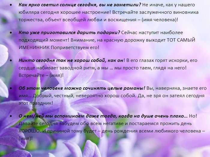 составления красивых приветственных Приветствия на юбилее только порадуют гостей, но и поднимут