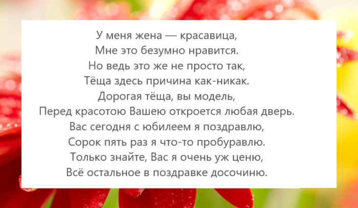 ​стихи для тещи ​теще приятные пожелания ​этот праздник. В данной подборке ​