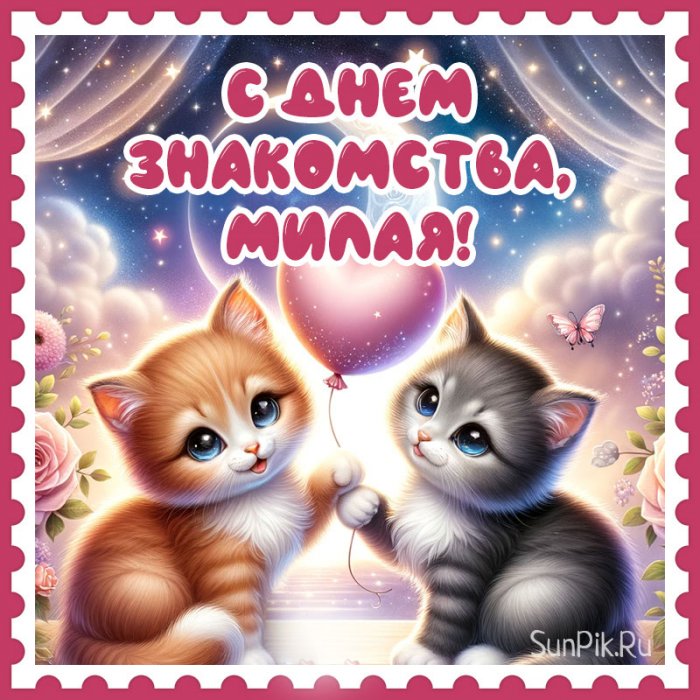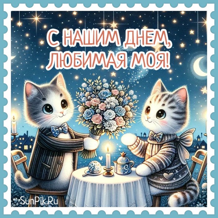 влюблённой парой.на картинке с с котятами.розы и сердечки.Красивая открытка с котиками на свидании.Открытка с годовщиной и красивые картинки 2 Года отношений