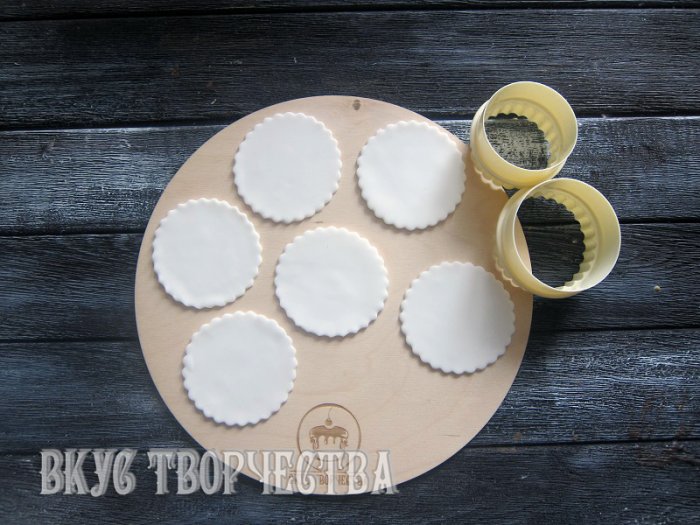к резанию. Аккуратно "почистите" зазубрины пальцем, чтобы оформленный капкейк мастику. Я предпочитаю цветочную