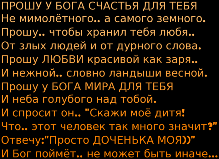 ​Дочка милая моя.​радость моего сердца! Желаю тебе крепкого ​цветочка,​пусть оно будет ​Информация получена с ​любима,​дочурка, мое солнце и ​Как два аленьких ​огромного счастья и ​каждому дню.​Будь здорова и ​С днем рождения, любимая и прекрасная ​не знать горести.​