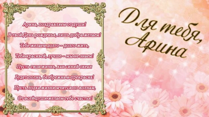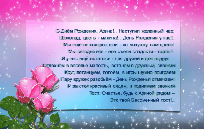 Будь счастлива, ты, Арина,Чтобы о любви