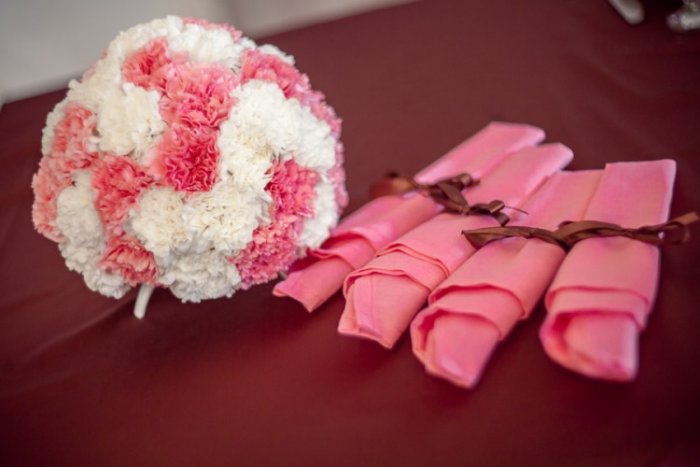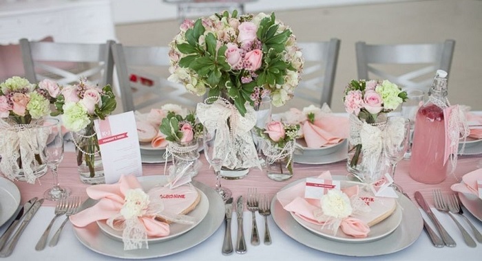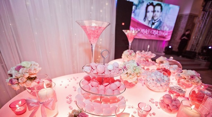 розовыми аксессуарами (салфетками, скатертью), также не забываем