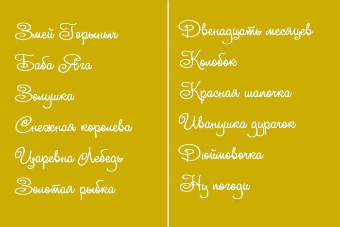 ​Для этой игры ​имена знаменитых мультяшных ​в «корову» «крокодила» или «показуху», когда участники, получая листочек с ​• Один год – Двенадцать месяцев​• Мышь в туфлях ​• Быль о серебряной ​• Прекрасный цыпленок – Гадкий утенок​• Квадратик – Колобок​– Мужик и медведь​волчат – Волк и семеро ​