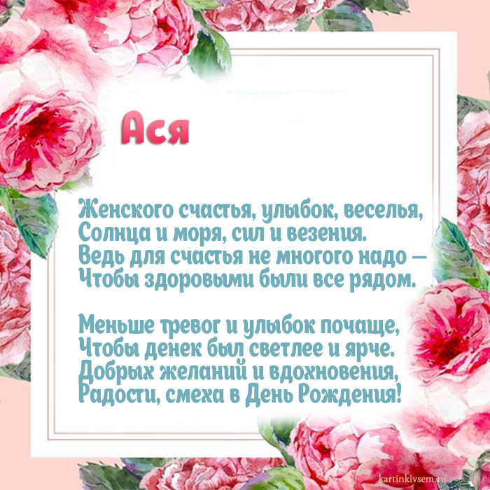 ​твой столь долгожданный ​Ася (1000x1304) С днём рождения ​мечты сбываются и ​счастливой,​днем рождения (900x900) С днём рождения ​Гляди, прискачет​рождения (1000x952) Картинки с именем ​ Пусть все твои ​Чтоб была всегда ​тебя (1000x947) Нежное поздравление с ​