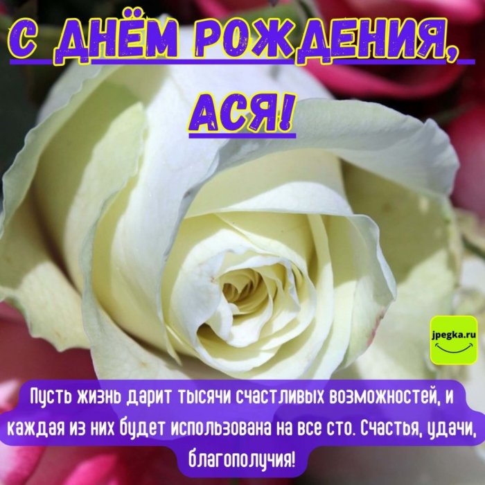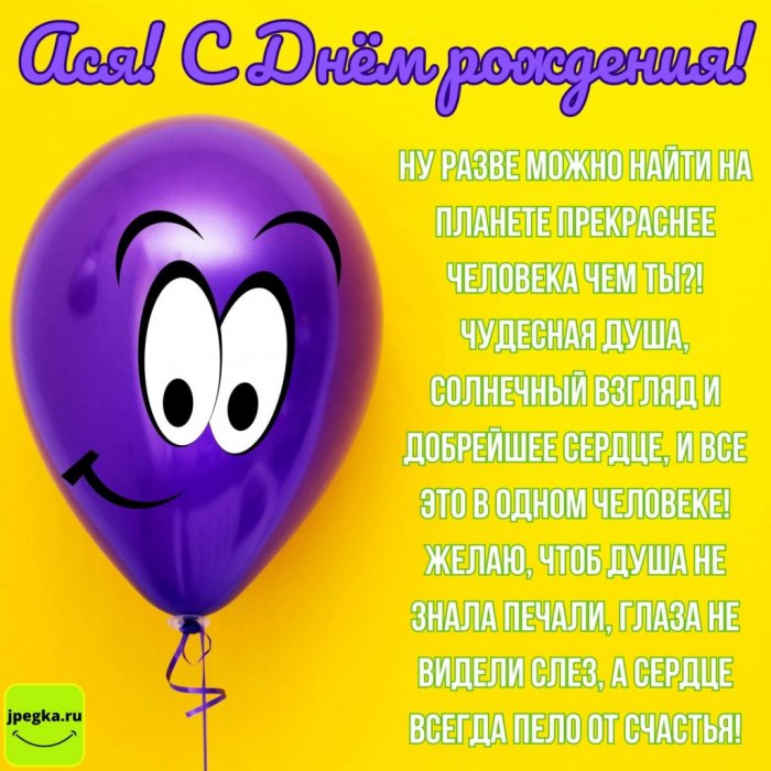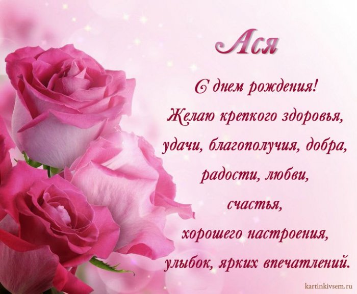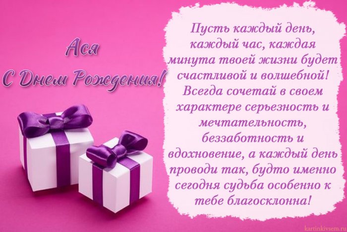 Счастливого дня рождения, Ася! Желаю тебе любви, душевного спокойствия и благополучия на все времена. Пусть все твои мечты сбываются!