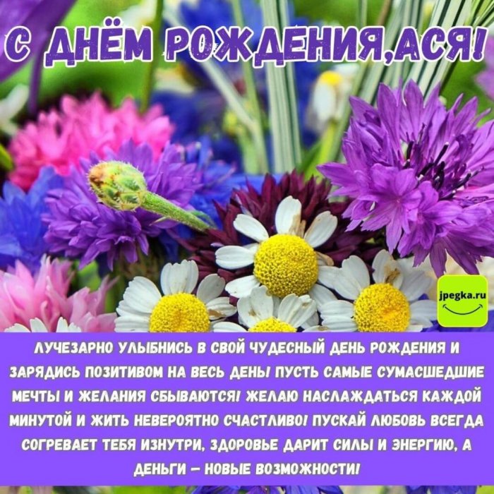 С Днем рождения, Ася! Хочу пожелать исполнения самых заветных желаний! Оставайся такой же красивой, энергичной и жизнерадостной!