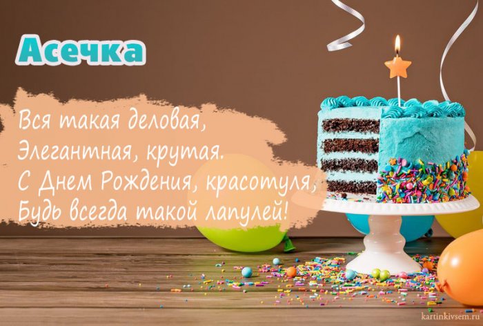 Счастливого дня рождения, милая Ася! Пусть каждый миг твоей жизни будет наполнен радостью и любовью. Оставайся всегда такой же красивой и жизнерадостной!