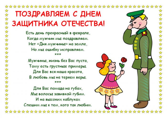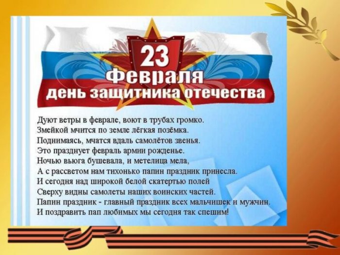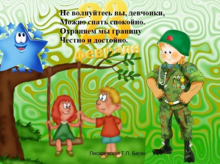 23 февраля —Наша Родина богата,Стережет покой страны,