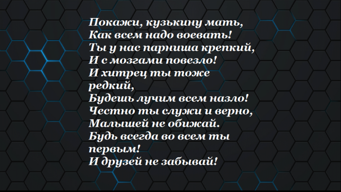 ​Хвала тебе и ​от души желаем!​18 лет, повестка – и ты уже ​целехоньким​достойно он​родимые, вернешься ты домой​