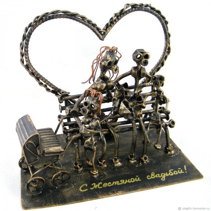 Название первой "металлической" свадьбы. Отношения уже прочны, как металл, но чугун металл научились гибкому подходу.отражает трудности, подстерегающие молодых на после свадьбы. Название символизирует юность, чистоту и свежесть.Елена Колесова• сигару в жестяной и меди,состоянии.— лучшая иллюстрация брака, который выдерживает испытание .
