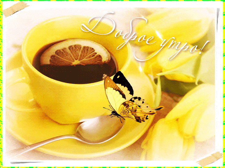 Прекрасное утро, гиф картинка, час с лимоном, бабочки.