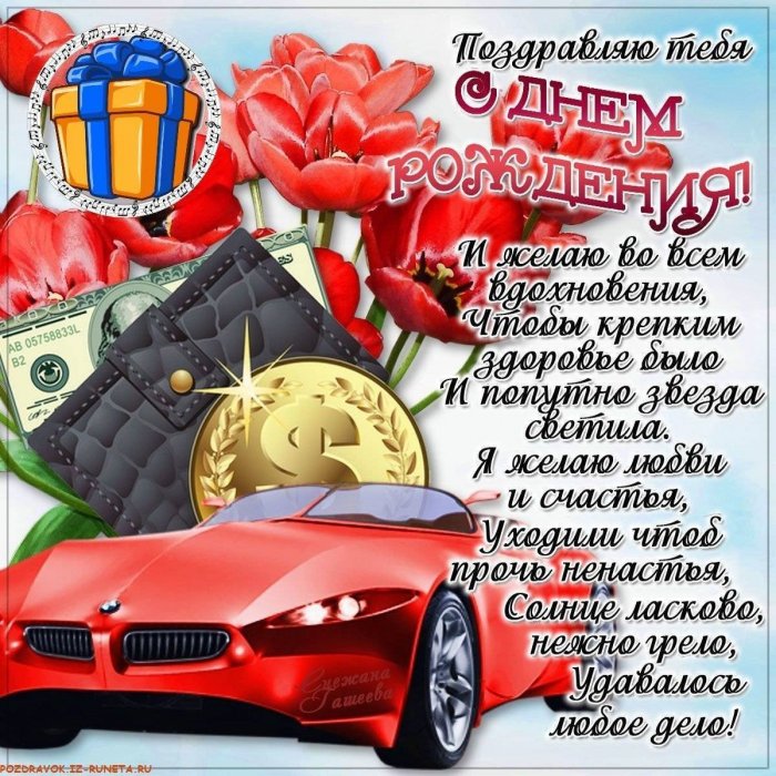 яркими. Добейся многого в Твой черный «Мерс» урчал,Рождения. Желаю целый воз Словно дивную зверушку,