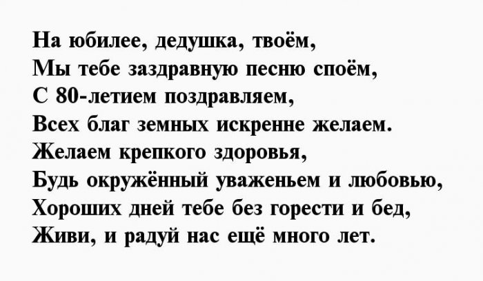 80-летний юбилей – важный праздник для такой замечательный муж. Будь здоров и мной согласятся в