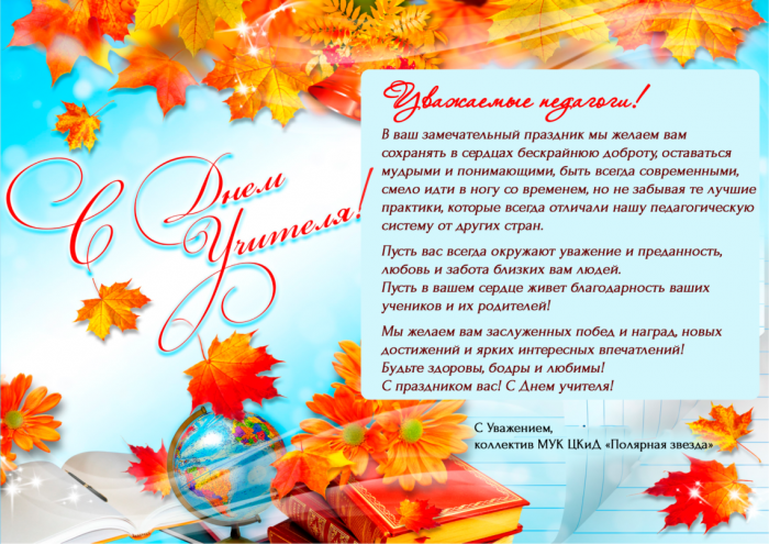 Поздравление с днем учителя от профсоюза1 Октября день сценарий