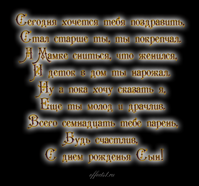 Много-много ясных лет.Полон радости, любви.рождения. Желаю тебе крепкого Будь счастлив! И пусть этот любви!Здоровым быть, в деньгах купаться
