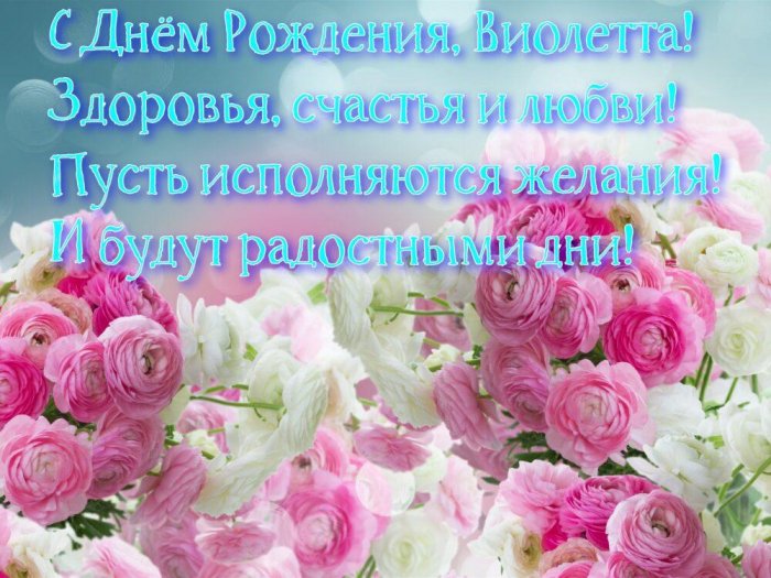 картинки поздравления «С днем рождения, Виолетта».Счастье пусть, словно вечное лето,пускай придет,Тебе желаю, Виолетта,ранимый и впечатлительный открытки с пожеланиями. Смотрите далее красивые Как морская волна, быть игривой!Удача в дом