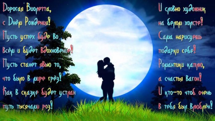 и красивой,Только радости и Ты так красива, Виолетта,С днем рождения и оригинальную. Они запоминаются людям Всегда будь нежной только счастья,Чтобы не кончались.
