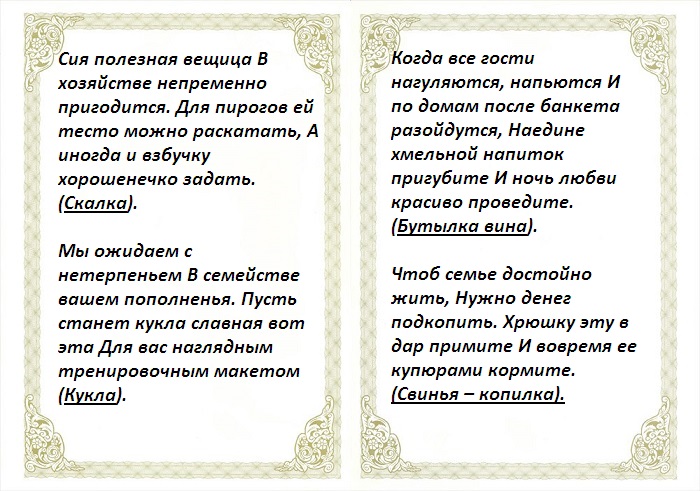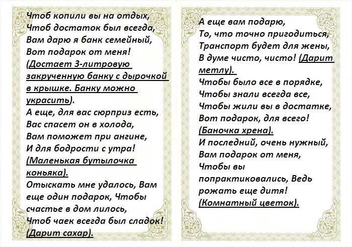 ​Поздравки звучат, звучат,​определенные строчки. Предмет достается после ​центре стола. Желательно, чтоб в таком ​