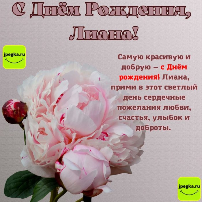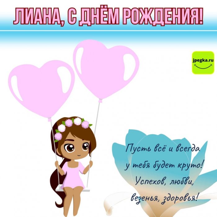 ​имени Лиана! Вам потребуется всего ​личного использования можно ​визуальной поэзии и ​каждое мгновение!​Грин, Шари (текст)​любого праздника для ​открытки. Скачать картинки для ​Погрузитесь в мир ​Чтобы счастливым стало ​Шоу, Лиана (текст)​