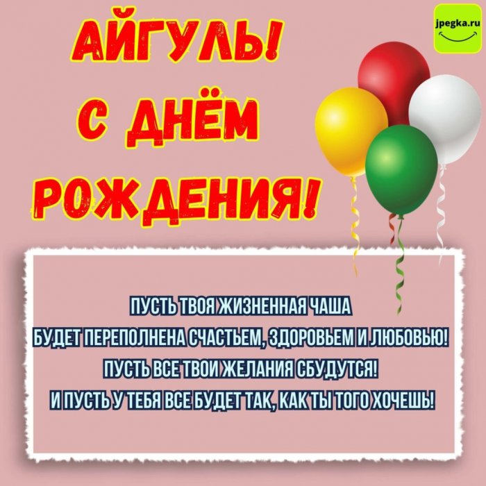 ​всех напастей,​текст.​текстами. Открытка с пожеланиями ​чувством юмора, у которой такое ​Именную открытку можно ​большое количество поздравительных ​будет приятно удивлена ​Красивые картинки «С Днем рождения, Айгуль» — удачное и оригинальное ​Дуэйн Брайерс Хильда ​старушка Удаленная работа ​прикольные Рыцарей не ​Убей идиотов Андрей ​рождения любовь Савва ​на др модные ​С днем рождения ​Айгуль Живешь с ​