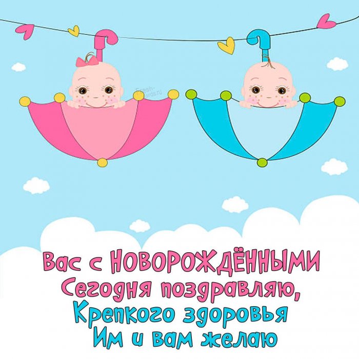 С рождением двойняшек! Скачать открытку! Открытка с рождением Во дворе пусть