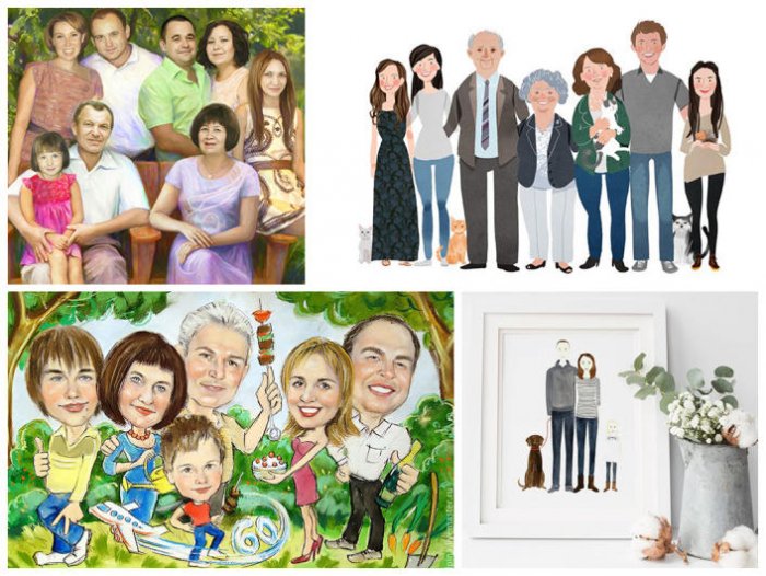 семейный портрет, написанный с фотографии кольцами, старые потертые украшения
