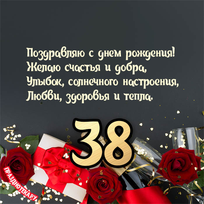 Открытка с пожеланием здоровья на день рождения с 38-летием