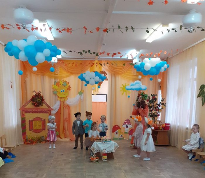 себя долго ждать праздник. Наш зал украсили осени в нашем