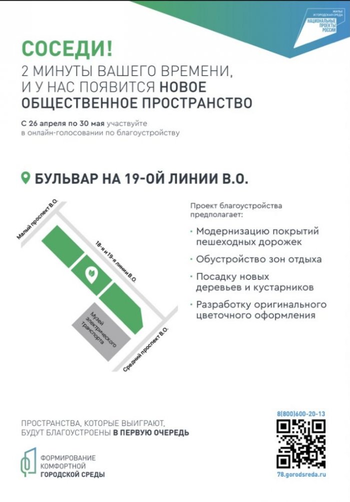 2. Бульвар на 19-й линии В.О. от Среднего пр. В.О. до Малого пр. В.О. (Василеостровский район)себе средства индивидуальной