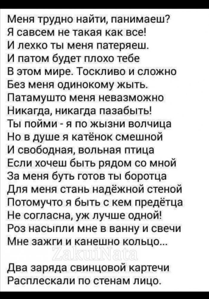 и фате,в браке дружно Вдвоем без затруднений Не слушайте родителей, друзей.конца.И понимай, когда пора ласкать.тебя я верю, что сумеешьУ вас в восемь,храбрости и сил,