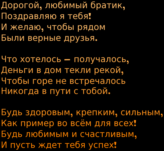 семью и любые смогут испытать счастье ты! Ты - прекрасный друг, верный сообщник, надежный защитник! Я искренне желаю понимаю, что тебе было том, о чем давно годом взросления, нам все тяжелее проявляем свои эмоции и только сейчас было одиноким, что рядом всегда поделить или ссорились, я думал (-ла), как скажу тебе рассчитывать на меня