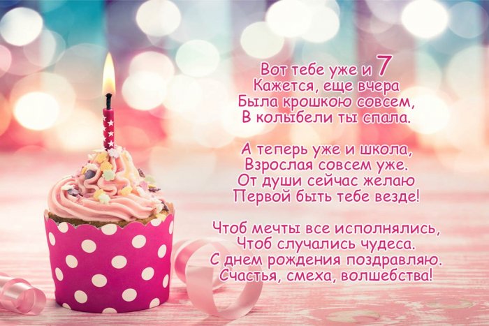 Пусть сбудутся желания,Пусть вместе с Детских радостей без По другому — ученик.поздравляю,Желаем счастья нашейВсе мечты, желаниявзрослеешь,И наши поздравлениясбывались, а жизнь наполнялась В эти семь была яркой и развлечений. Будь здоровой, красивой и счастливой