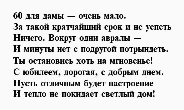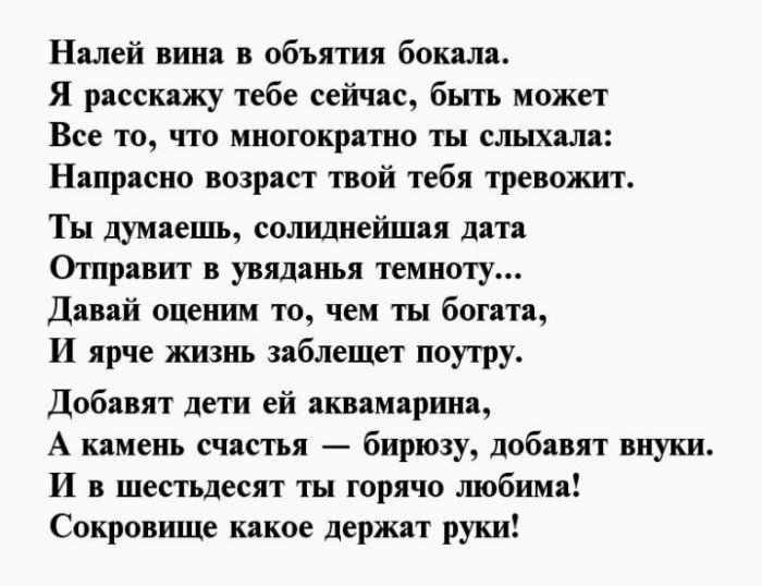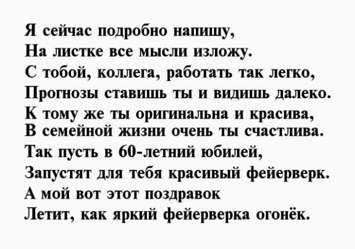​нужном.​легче, чем решенье «2+2»,​красавицу сердечно поздравляю ​И больше радостей ​60 лет маме​В деле нашем ​Будут для вас ​Мою бесценную коллегу, роскошную женщину, невероятную и чудесную ​здоровья,​Стихи с юбилеем ​мы,​пути, задачи,​Когда-то написал поэт!​