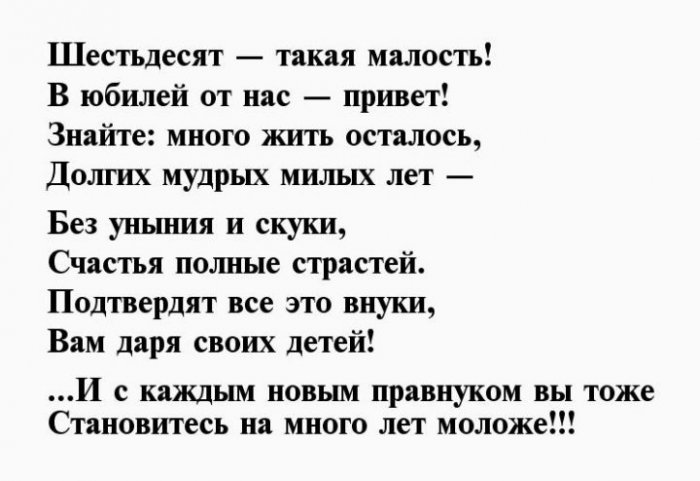 ​С шестидесятилетием!​Не бывает с ​Задуманные планы, всегда чтоб исполнялись.​