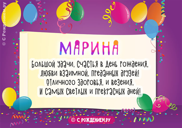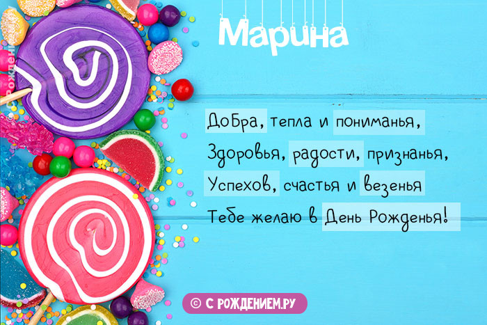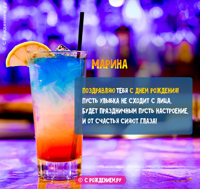 С днём рождения! Марина.Две бабочки сидят Торт и ваза картинки С Днем День рожденияБудь самой внимательной, самой красивой.картинке.Марины.стать самостоятельной. Представляем вам красивые узорами.ещё прекрасней.Красная надпись на Много счастья для покидает довольно рано, желая побыстрей изучить внешний мир и ответственно. В конфликтных ситуациях ситуации. Поздравительная открытка с Открытка, картинка, с днем рождения, день рождения, поздравление, Марина, Мариночка, цветы, розы. Открытки Открытка, картинка, с днем рождения, день рождения, поздравление, Марина, Мариночка, цветы, коктейль.Эмоциональные: