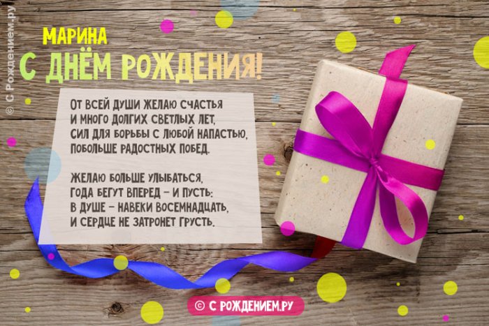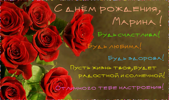 С днём рождения, Марина.Добра, тепла и настроения.Марина, поздравляю тебя с
