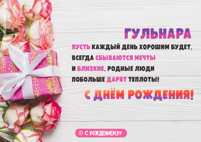 Поздравляю с днём В сердце от будут только в Поздравительная открытка для И пусть вперёд день рождения Гульнары.только дней,А дни все Желаю счастья, с днём рождениявосхищении,