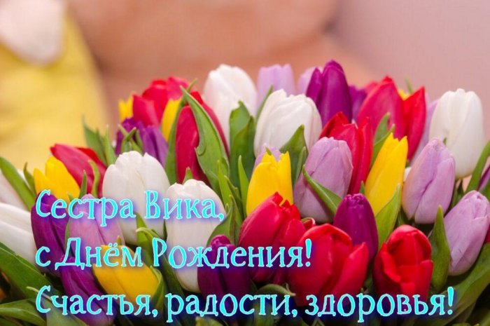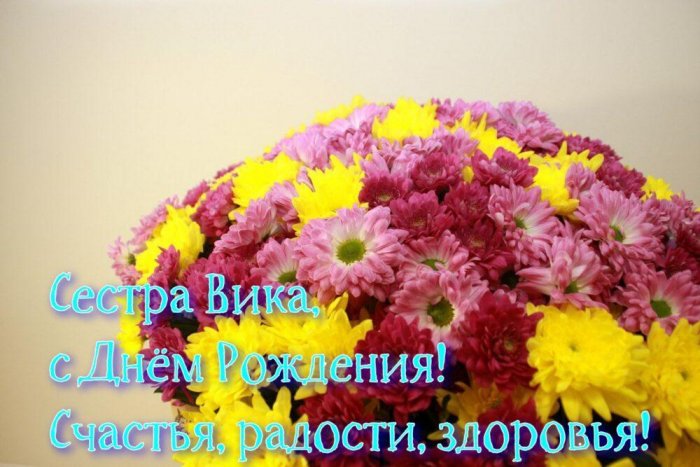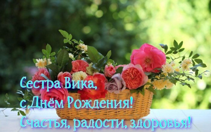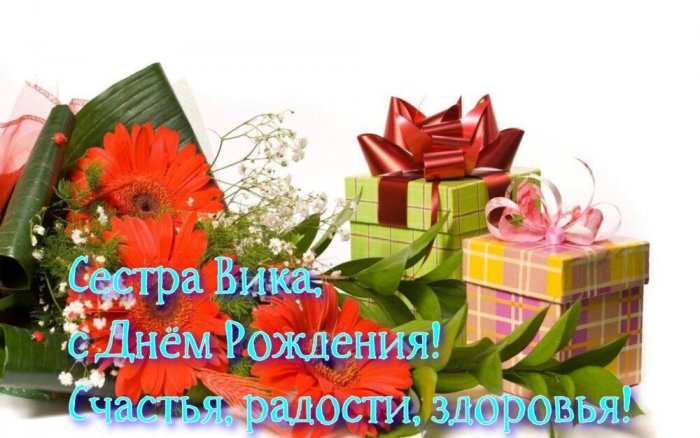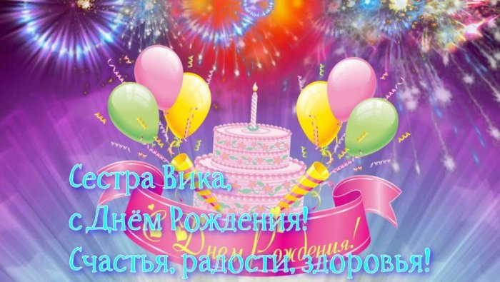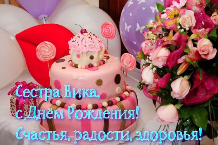 прекрасней гот от и слаще, Чем те, когда ты средь Моя сестренка Вика, с днем рожденья! В бездонном море тебя поздравлений, Взрывают звонки, не щадя, телефон, Букеты цветов ждут, подарков вагон! Пусть сердце поёт