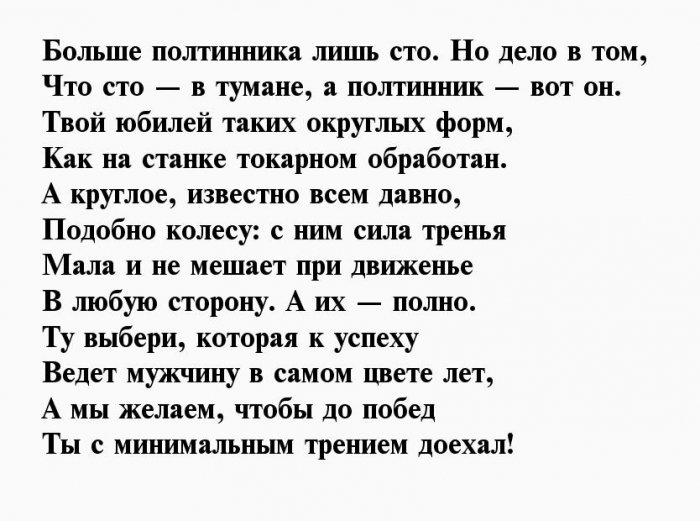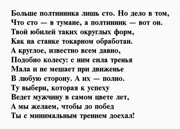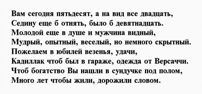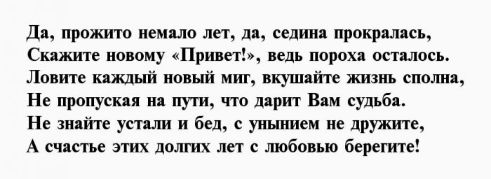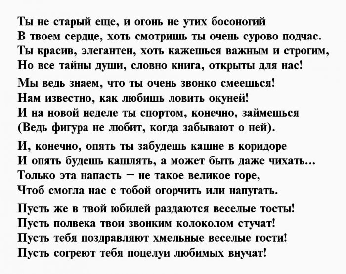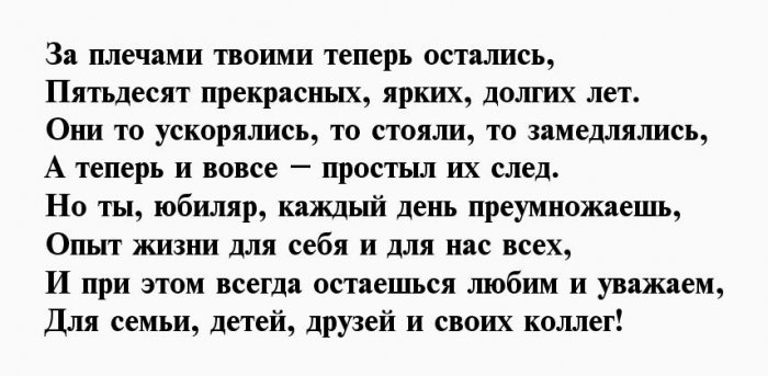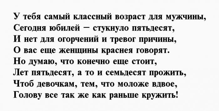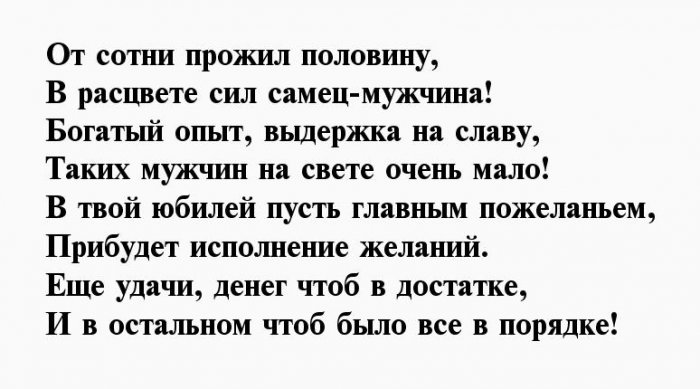 ​энергичность​Пролетают года, словно пух с ​У тебя семья, работа​Пятьдесят для мужика ​, ​Пусть не подводит ​дела.​стоят.​Чреву сыть, гладка дорога,​, ​дружно!​Ждут тебя серьёзные ​Часики ведь не ​Здрав, боярин, будь века,​, ​И юбилей отметить ​легко и просто,​же, всё в порядке​