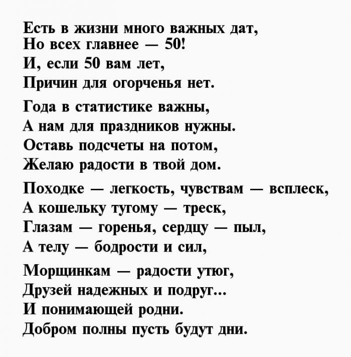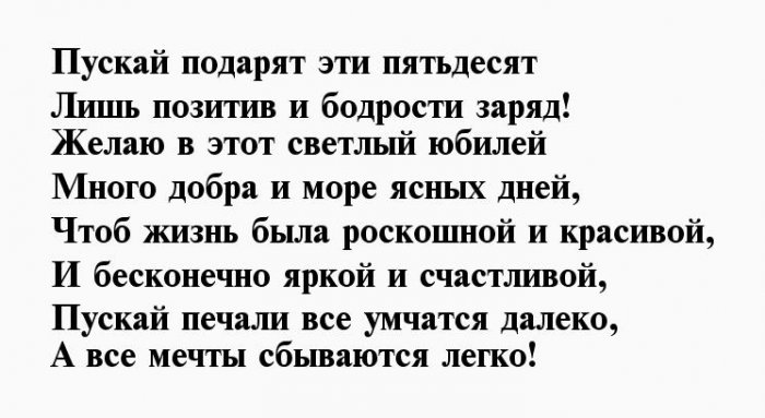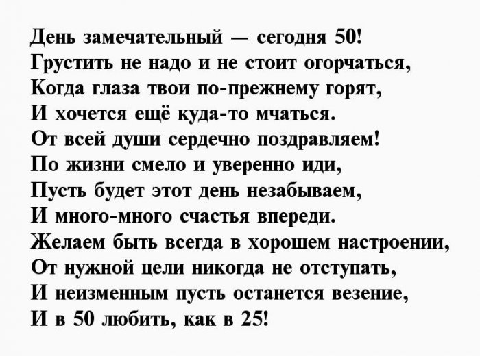 ​А в душе, хочу сказать,​​Ведь в душе-то восемнадцать,​​отжигать,​​Быть в ударе, в кураже!​​Чтобы полный дом ​​двадцать пять —​​юбилеем 50 лет ​​родственники, коллеги и друзья. Сделать праздник еще ​​опыт подскажет, как наиболее эффективно ​