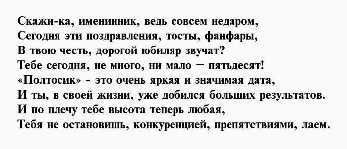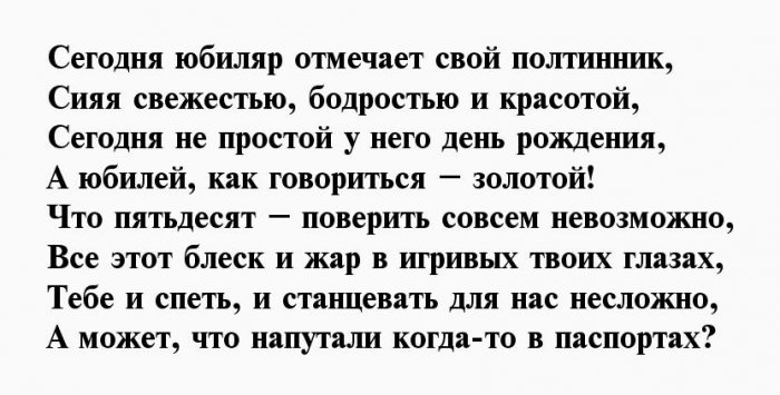​Ведь полтинник — это дата,​С юбилеем поздравляю,​